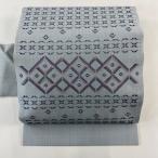 名古屋帯 逸品 証紙あり 南風原花織 鈴乃屋 本場琉球 菱 幾何学 青灰色 正絹 中古