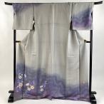 訪問着 身丈168cm 裄丈68.5cm L 袷 草花 刺繍 金銀糸 青灰色 正絹 逸品 中古
