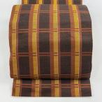 美品 名古屋帯 逸品 証紙あり 本場黄八丈 松葉仕立て 八寸名古屋帯 格子 焦茶色 正絹 中古