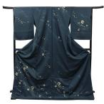 正絹訪問着 未仕立て 仮絵羽 濃紺地流水に吹寄せ模様