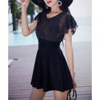 水着 レディース ワンピース水着 サロペット フレア 夏 おしゃれ ママ水着 日焼け防止 大きいサイズ 体型カバー キレイめ 20代 30代 40代 50代