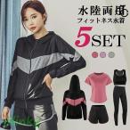 水着 レディース ラッシュガード 体型カバー 5点セット 大きいサイズ ママ水着 ぽっちゃり ラッシュガード 体型カバー 水陸両用