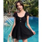 水着 レディース水着体型カバー オープンショルダーリボンワンピ風ワンピース レディース