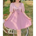 水着 レディース水着 メタリックフレアリボンワンピ風オールインワンスイムウェア 「大きいサイズ有」 レディース