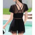 水着 レディース水着 フレアスリーブレイヤードワンピ風オールインワン水着「大きいサイズ有」 レディース