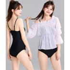 水着 レディース水着 2WAY長袖オフショルシアートップス+ドレープ仕立てオールインワン水着 2点セット 「大きいサイズ有」 レディース