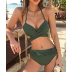 水着 「2点セット」2WAY ホルターネック サイドシャーリング ビキニ 水着 レディース