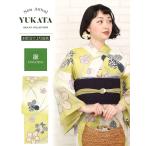 【50%OFFクーポン】決算大感謝祭|2/15~28浴衣 レディース bonheur saisons ボヌールセゾン 黄緑色 イエローグリーン 椿 つばき 花柄 ラメ 綿麻 手捺染 手縫い 夏祭り 花火大会 女性用 仕立て上がり フリー 送料無料