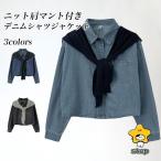 デニム シャツジャケット レディース デニムシャツ 肩マント 2点セット デニムジャケット ゆったり レトロ 春 秋 アウター トップス 長袖 シャツ