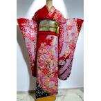 振袖 着物 セット 美品 正絹 身丈167cm 裄丈67cm 赤 ピンク 安い 成人式 中古 F029