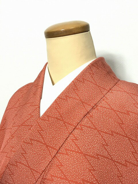 週末限定25%OFFCOUPON発行中/【中古】Sサイズ 正絹 紬 赤茶地に幾何学文様 レディース 袷 着物 中古着物 女性 リサイクル 中古 きもの kimono 女性用 リサイクル着物 中古着物訪問着 着物リサイクル訪問着 女性用着物 レディース着物シーズン冬