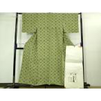 平和屋本店●極上 銀座 志ま亀 小紋 花唐草文 山葵色 縮緬地 たとう紙付き 逸品 DZAB3541kh6