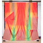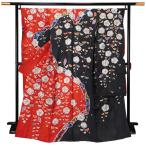 未仕立て 振袖 単品「朱色×黒 枝垂れ、辻が花」日本製 仮絵羽 振り袖 正絹 着物 レディース 成人式 結婚式 結納 パーティー 晴れ着【メール便不可】