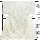 訪問着 手刺繍 総刺繍 正絹 白地 桜 未仕立て 仮絵羽 フォーマル 礼装用 着物 反物 枝垂れ桜 桜枝 駒羽二重 丹後ちりめん No.2-0149