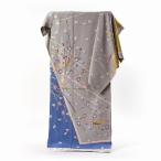 重要無形文化財保持者(人間国宝)「福田喜重」氏作 超逸品訪問着(未仕立て) ぼかし染めに松葉の亀甲と松ぼっくり/灰色・青紫灰