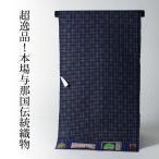 超逸品本場与那国伝統織物 純綿 手織り紬 花織/藍染