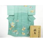 正絹訪問着 未仕立て 仮絵羽 薄グリーン地吉祥紋様に花紋】