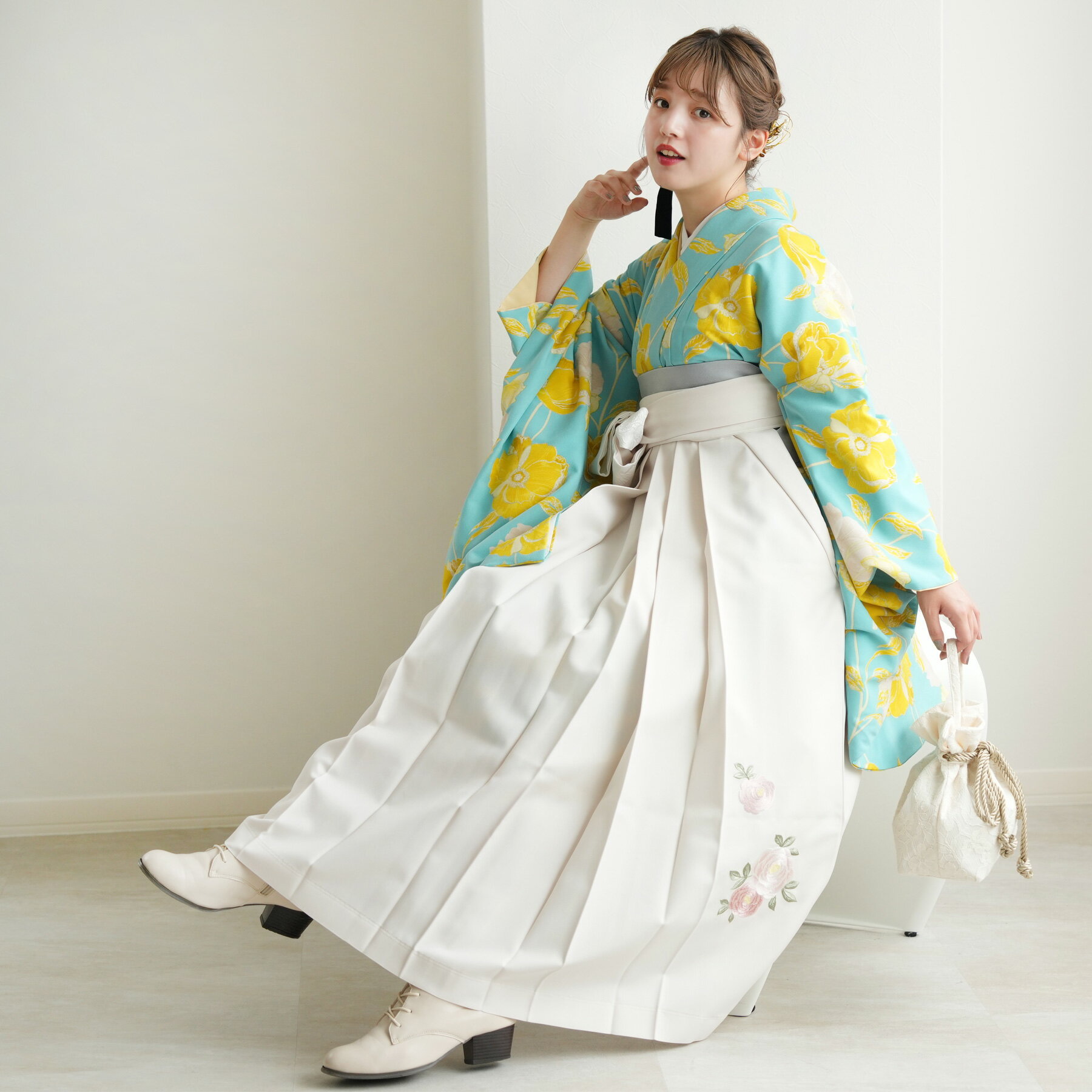 【5%OFF】【レンタル】【玉城ティナ×紅一点 袴 17点セット エメラルドにレモン色のポピー 日本製】 二尺袖着物 はかま フルセット 卒業式 大学生 専門学生 レディース 女性 足袋プレゼント 重ね衿縫い付済 往復送料無料