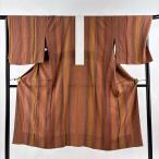 美品 長襦袢 身丈127.5cm 裄丈68cm L 縞 ぼかし 赤茶 正絹 秀品 中古