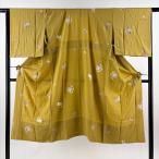 美品 長襦袢 身丈125.5cm 裄丈66.5cm M 狛犬 うさぎ 金彩 黄土色 正絹 秀品 中古