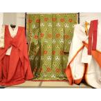 平和屋本店■超希少 十二単 丸に三つ柏文 長襦袢 六点セット 金糸 法衣 寺院 仏具 仏教 僧侶 神職 装束 正絹 逸品 KAAA1804kk4