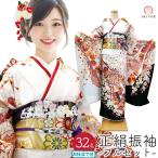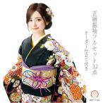 【決算セール】仕立て付き 正絹 振袖 フルセット32点 f-017 黒 ブラック 成人式 卒業式 結婚式 金駒刺繍 一式 セット