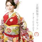 【決算セール】仕立て付き 正絹振袖フルセット f-441 赤 レッド 丹後ちりめん 成人式 受賞柄
