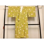 美品 長襦袢 身丈129cm 裄丈66cm M 麻の葉 地紋 山吹色 正絹 秀品 中古