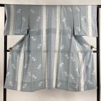 長襦袢 身丈122cm 裄丈65cm M やまと 草花 縞 青灰色 化繊 美品 秀品 中古