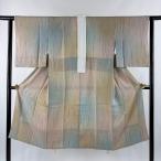 長襦袢 身丈121.5cm 裄丈63cm S 地紋 よろけ縞 絞り ぼかし 灰緑 正絹 秀品 中古
