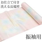 お仕立て付き 長襦袢 振袖用 洗える 誂え 新品 成人式 晴れ着 振り袖 レディース 女性用 生地 反物 うすピンクぼかし 水色 黄色 吉祥文様 綸子 半衿付き