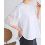 tシャツ エンブロイダリーフラワー ショルダーコンビ カットソー レディース
