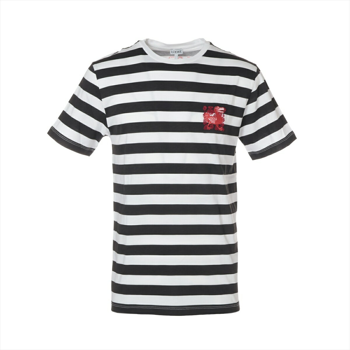 【全商品21%OFF!11/30 23:59まで】ロエベ LOEWE ブラック ボーダー ロゴ コットン S 半袖Tシャツ ホワイト WS16092 【中古】