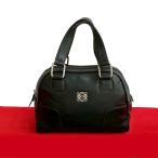 極 美品 LOEWE ロエベ アナグラム ロゴ シルバー 金具 ステッチ レザー 本革 ハンドバッグ ミニ ボストンバッグ ブラック 黒 22755