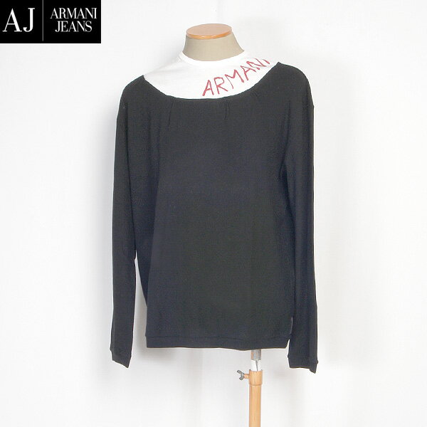 【訳アリ 汚れ・黄ばみ等有】アルマーニジーンズ ARMANI JEANS レディース インナー カットソー ロンT 長袖Tネック部分ARMANI JEANSロゴプリント・レイヤードスタイルロングTシャツ ブラック・ホワイト(R21800/R23149)黒/白 T5M0 1WR 12 NERO 【送料無料】【smtb-TK】