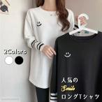 チュニック ロングTシャツ ロンt tシャツ レディース スマイル かわいい 笑顔 長袖 ワンポイント 大きめ ルームウェア 30代 40代 ビッグシルエット