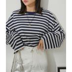 tシャツ レディース 長袖ボーダー柄クルーネックロングTシャツ レディース