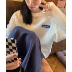 tシャツ ロゴ刺繍 スムース ロングTシャツ レディース