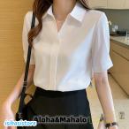 ワイシャツ 半袖 無地 レディース 夏 ブラウス Vネック 無地 コットンシャツ フォーマル トップス ビジネス スーツ インナー 事務服 スリム 着痩せ 30代40代