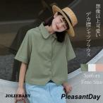 シャツ レディース 夏 半袖 ブラウス ワイシャツ シフォン 無地 丸襟 折襟 カジュアル 事務服 仕事 春夏