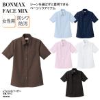ブラウス 半袖 シャツ ワイシャツ レディス レギュラーカラー 女性 白 黒 ネイビー シンプル 形態安定 防汚 飲食店 オフィス FACE MIX FB4036L 刺繍 プリント