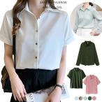 【最安挑戦!57%OFF&6678円→3339円!】ブラウス レディース 半袖 シャツ ワイシャツ 事務服 大人女子 トップス 前開き 透けない レギュラーカラー フェミニン 就活 オフィス カジュアル フォーマル 入学式 卒業式 キレイめ お洒落 Yシャツ