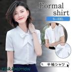 ワイシャツ 半袖 レディース ブラウス シャツ リボン 半袖シャツ ビジネス 事務服 オフィス おしゃれ 通勤 通学 就活 細身 体型カバー ホワイト