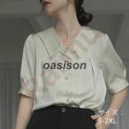 シャツ レディース 夏 半袖 ブラウス ワイシャツ トップス 無地 丸襟 折襟 カジュアル 仕事 2021春夏