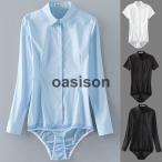 Vネック ボディーシャツ つなぎ ボディーブリファー 半袖/長袖 ワイシャツ ブラウス シンプル 無地 スーツシャツ カジュアルシャツ スリム パンツ型シャツ クロッチ付き 着崩れない 女性用 ビジネス オフィス フォーマル 通勤OL 高級感 上質 就活 入学式用 春夏秋