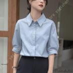 ブラウス レディース 半袖 長袖 シャツ ワイシャツ 綿シャツ 無地 開襟 丸襟 角襟 襟 ストライブ柄 春秋