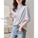 シャツ レディース ブラウス トップス バルーン袖 襟付き パフスリーブ 半袖 落ち感 着痩せ 体型カバー おしゃれ 可愛い きれいめ ワイシャツ