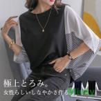 ブラウス レディース 半袖 5分袖 シャツ ストライプ柄 春 夏 プルオーバー 丸ネック ゆったり 通勤 母の日 柔らかい 高級感 重ね着 可愛い