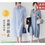 シャツ レディース ブラウス ストライプ 日焼けとめ ワイシャツ ロングシャツワンピース 長袖 夏 とろみ 着痩せ トップス チュニック