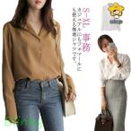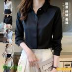 シャツ ブラウス レディース 長袖 ワイシャツ シフォン スリム ゆったり 開襟 前開き ボタン隠し ビジネス エレガント 通勤 夏 秋 おしゃれ